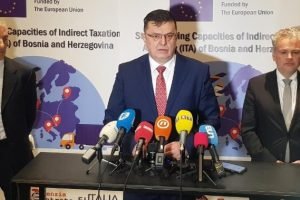 Šef Delegacije EU i specijalni predstavnik EU u BiH ambasador Johann Sattler i direktor Uprave za indirektno oporezivanje BiH Zoran Tegeltija, najavili su...
